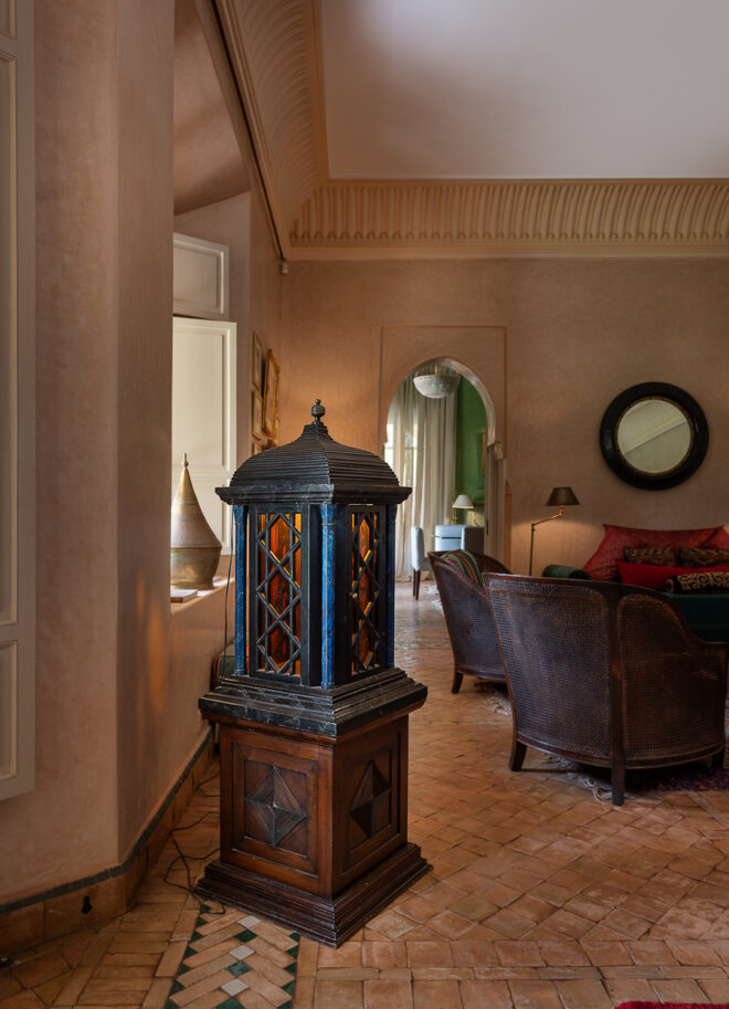 Casa Memoria bears the indelible mark of yet another illustrious hand-that of Bill Willis, the tamed American architect who, having been bewitched by Marrakech in the 1960s, adorned the city with his singular genius. Celebrateo for his design of Yves Saint Laurent and Pierre Bergé’s first residence, Willis imparted his singular vision to Casa Memoria. Within its venerable walls, his audacious furnishings and sculptural masterpieces conjure a delicate marriage of Moroccan legacy and baroque opulence, infusing the villa with an atmosphere both sumptuous and eternal.